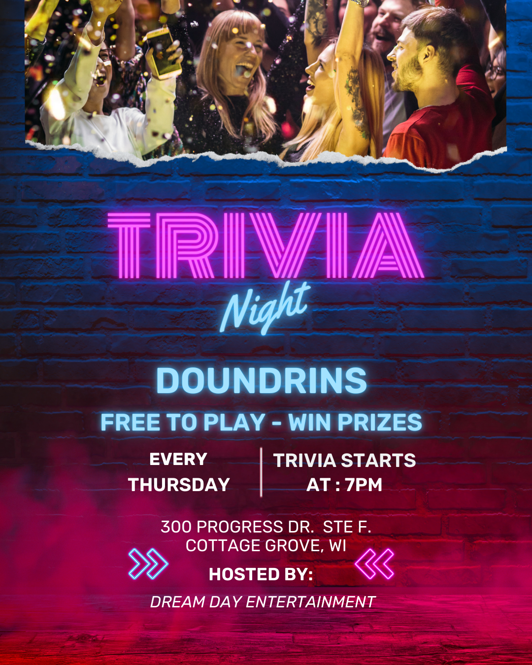 Thursdays = Trivia + Cocktails. General Knowledge Trivia every Thursday at 7PM at Doundrins! 🎉Prizes available | 🕖 7PM | 💡 Free to play